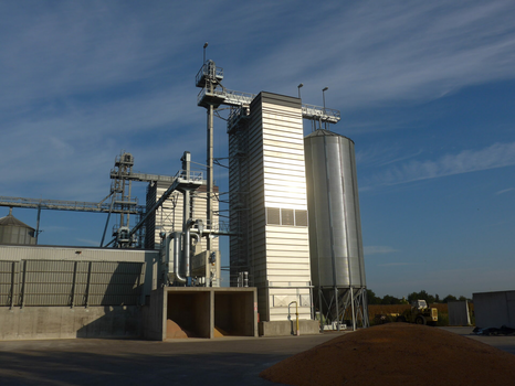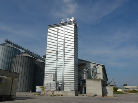 — Сушильная башня со ступенчатыми тоннелями из стали ALUZINK; вытяжные тоннели верхней части сушилки из нержавеющей стали; внутренняя обшивка панелями из стали ALUZINK.